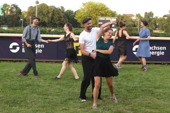 sowie Tänzerinnen und Tänzer, Autos, Statisterie und Pferde.